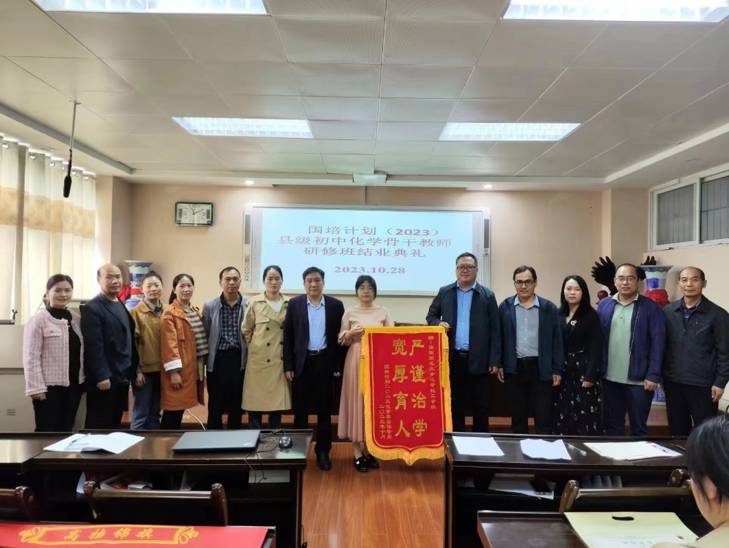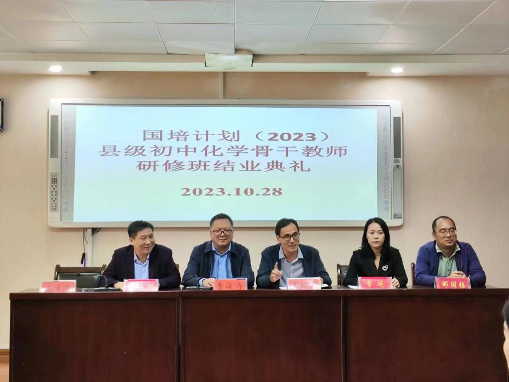 10月28日上午,“国培计划(2023)”县级初中化学骨干教师研修班结业典礼在化学楼407会议室举行。公司副经理曹俊涛、王红军、项目负责人沈久明老师及研修班班主任出席结业典礼。结业典礼由王红军主持。