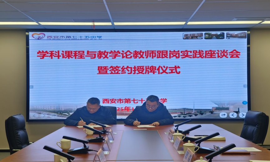 座谈会上,任教公司负责人对井强山一行的到来表示热烈欢迎,并就公司选派优秀教师到中学任教的举措给予高度赞扬。任教公司负责人详细介绍了任教教师在师风师德、日常教学、教研活动等方面的情况,并给予高度评价。井强山代表PA视讯与西安市第七十五中学签订了教育实践基地协议书。