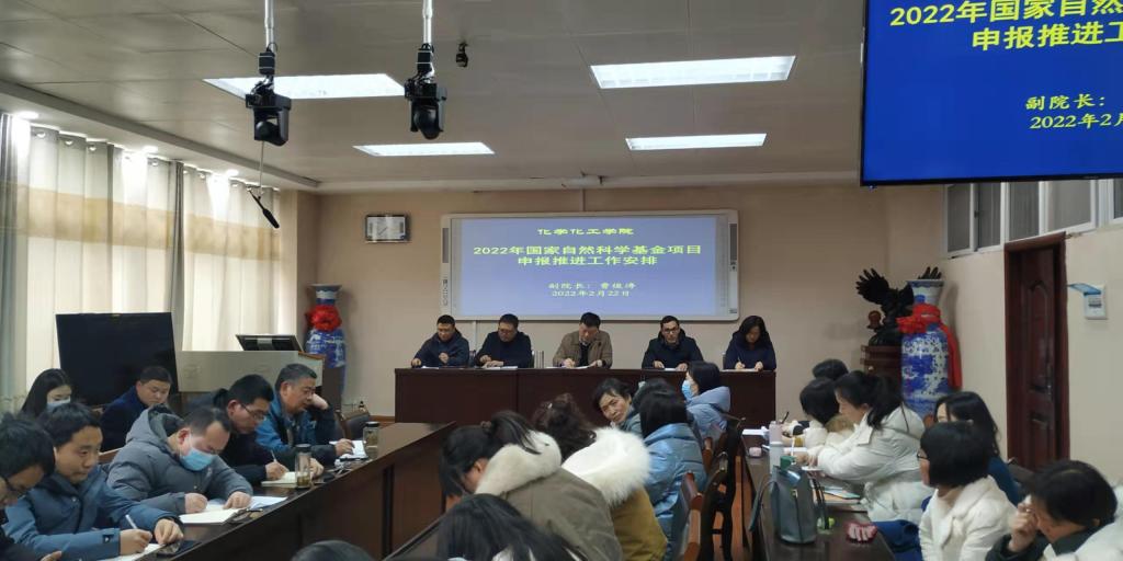 2月22日下午,PA视讯官方网站在化学楼407会议室专题召开2022年国家自然科学基金项目申报推进暨学科科研工作部署会。会议由党委书记郭鹏书记主持。PA视讯官方网站教授、副教授、博士、科研工作人员参加会议。