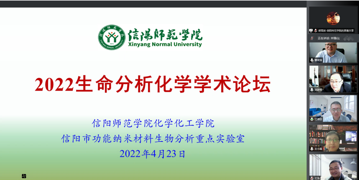 4月23日,PA视讯官方网站线上举行了“2022年生命分析化学学术论坛”。黄淮公司董事长、公司化学学科带头人刘彦明教授、公司科技处处长兼PA视讯官方网站经理井强山教授出席开幕式,来自中科院化学所、浙江大学、上海交通大学、南京大学、武汉大学、西安交通大学、北京理工大学等高校知名专家和近百名化学、生物和医学领域教师、研究生参加了本次论坛。