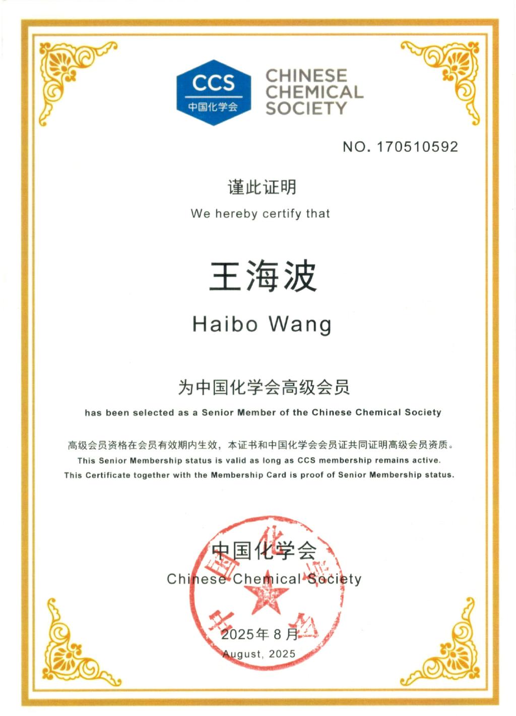 近日,中国化学会公布了新晋升为高级会员名单。公司PA视讯官方网站王海波教授成功晋升成为高级会员。