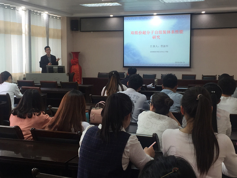 黄克靖博士主持了报告会。报告开始之前,黄克靖博士向全体研究生解释了举行“学术报告活动”的目的、意义和方式。随后,黄克靖博士、曹新华博士和王海波博士分别向全体研究生做了“二维过渡金属二硫化物”、“双组分超分子自组装体系性能研究”和“基于纳米材料和核酸探针的生物传感新方法研究”学术报告。