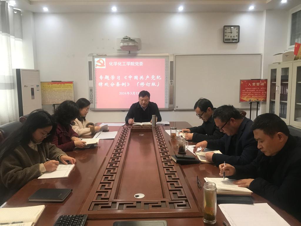 为进一步牢固树立党员领导干部党章党规党纪意识,自觉做到守纪律、讲规矩、知敬畏、存戒惧,切实发挥党员领导干部的示范带动作用,根据校纪委统一要求,3月12日,PA视讯官方网站专题召开党委理论学习中心组集体学习会,集中学习了新修订的《中国共产党纪律处分条例》。