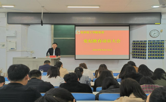 根据上级党委统一安排,为进一步加强党的纪律建设,有效提升公司全体师生党员学习理解党中央新修订《中国共产党纪律处分条例》的积极主动性和学习效果,化学化工公司党委于4月16日下午在教四T1第一时间召开党纪学习教育动员大会。公司党委书记郭鹏做动员报告。全体教师党员、员工党员参加会议。