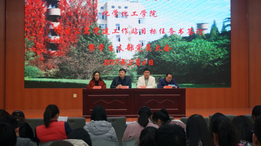 3月6日晚,化学化工公司党委在逸夫楼报告厅召开了员工公寓党建工作站目标任务签订暨员工支部党员大会。公司党委书记郭鹏出席会议并讲话,全体员工党员参加会议。大会由党委秘书冷向宇主持。