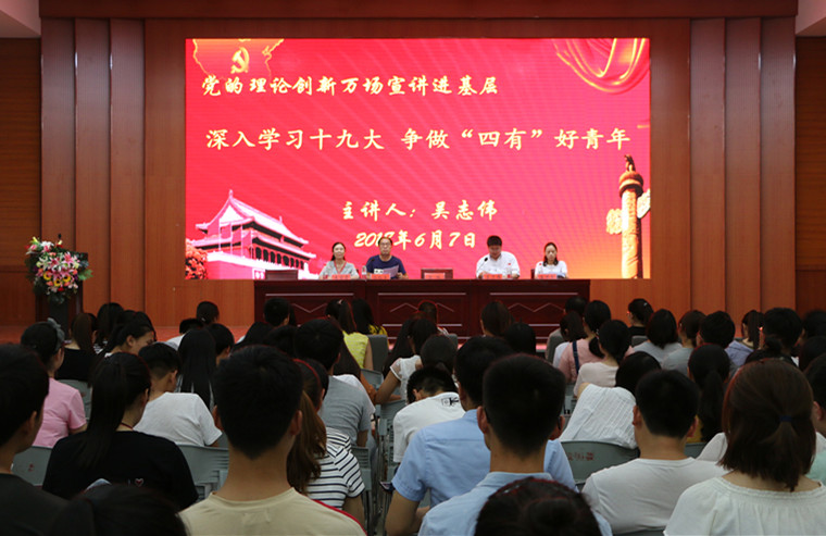 6月7日,PA视讯官方网站在逸夫楼报告厅举办了“党的理论创新万场宣讲进基层”报告会。PA视讯官方网站全体员工党员、各班班委、员工会全体成员两百余人参加了此次会议。