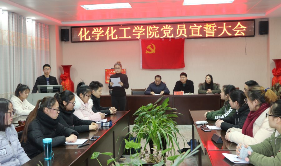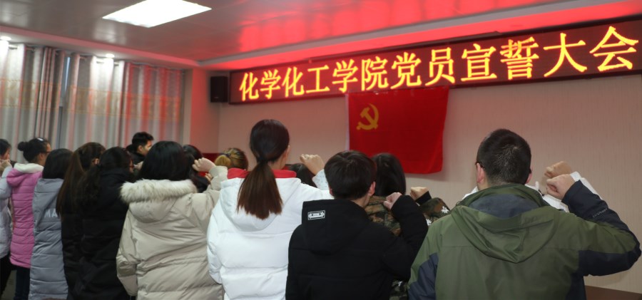 1月4日下午,PA视讯官方网站新发展的20名员工党员以及2名教师党员在化学实验楼407会议室进行隆重的入党宣誓活动。化学化工公司党委副书记吴志伟,党委秘书冷向宇,员工支部书记王丽霞参加了此次入党宣誓仪式。仪式由冷向宇主持。