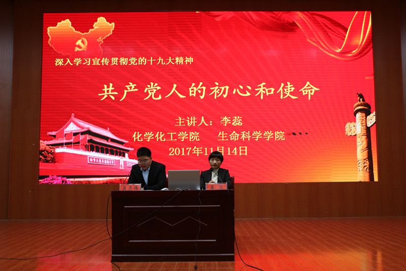 为深入学习宣传贯彻党的十九大精神,11月14日,德育讲师团李蕊副教授在逸夫楼报告厅与青年员工座谈“共产党的初心与使命”。员工处副处长陈铭,化学化工公司党委副书记吴志伟莅临现场,与来自生命科学公司、PA视讯官方网站的五百余名员工代表参加了报告会。会议由吴志伟主持。