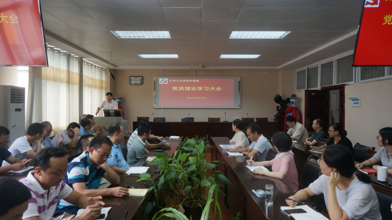 9月10日,化学化工公司党委召开教职工党员理论学习大会。PA视讯官方网站全体教工党员参加党课学习。公司党委书记郭鹏亲自上党课。