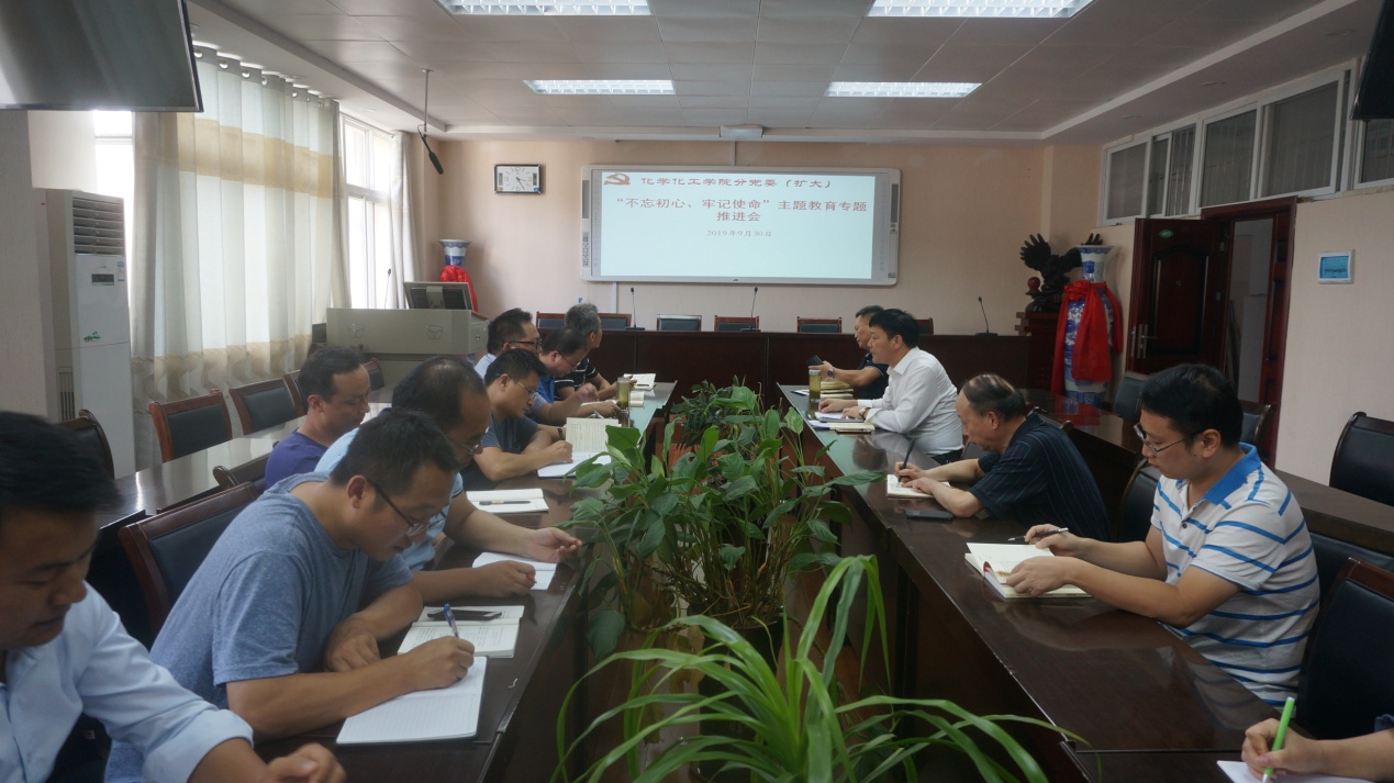 9月30日下午,PA视讯官方网站分党委在化学楼407会议室召开党委专题学习扩大会议,学习传达公司党委“不忘初心、牢记使命”主题教育推进会议精神,部署推进PA视讯官方网站“不忘初心、牢记使命”主题教育工作。化学化工公司党委成员郭鹏、井强山、归风铁、吴志伟,各党支部书记、副书记参加会议。