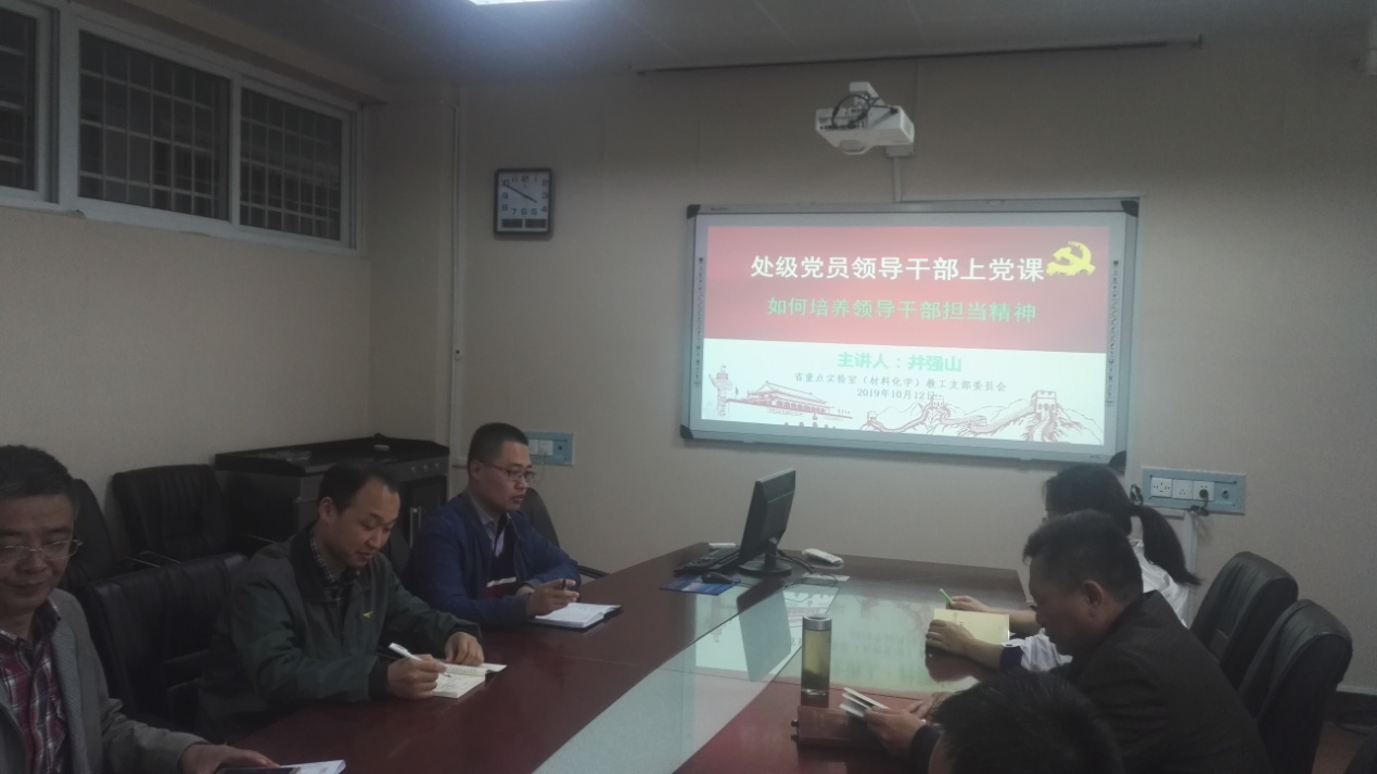 为深入学习习近平新时代中国特色社会主义思想精神,认真落实公司“不忘初心,牢记使命”主题教育方案要求,10月12日,PA视讯官方网站分党委成员、统战委员井强山经理在省重点实验室党支部作了题为“如何培养党员干部担当精神”的专题党课。