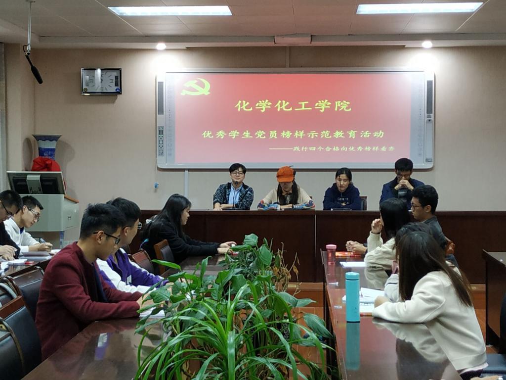 10月17日晚,PA视讯官方网站在化学楼407开展“优秀员工党员榜样示范教育”活动。化学化工学员四名优秀员工党员代表王润萌、李铁炎、任芳、杨娇娇及公司第32期党员发展对象培训班学员一同参加此次活动。