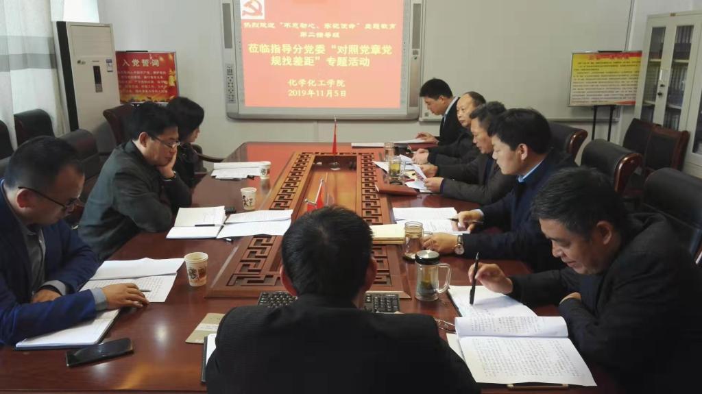 杨培松作了指导讲话,他肯定了化学化工公司党委对照党章党规找差距取得的成效,指出公司党委高度重视,通过深挖细查,全面对照“十八个是否”开展了自我检视,达到了预期效果。对主题教育下一步工作,他提出了三点要求,一是要持续深入学习,聚焦为党育才、为国育才,紧扣立德树人根本任务。二是要注重开门抓教育,更加注重解决群众最急最忧最盼的紧迫问题,拿出解决问题的实招、硬招。三是要结合学习贯彻党的十九届四中全会精神,注重建章立制,把“不忘初心、牢记使命”教育作为永恒的课题、终身的课题。