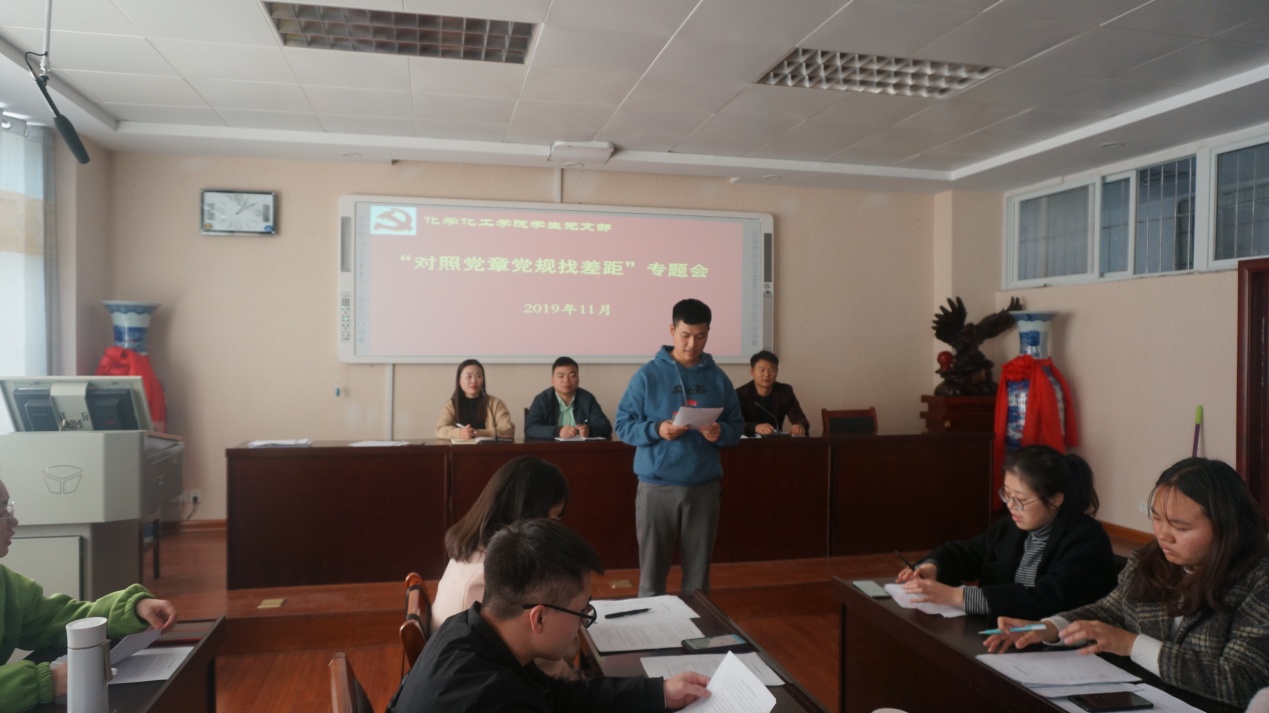 为了增进党员的模范意识、纪律意识,不断提升党员的政治境界、思想境界、道德境界。11月19日,PA视讯官方网站员工党支部在实验楼407会议室开展“对照党章党规找差距”专题会议。本次会议由冷向宇老师主持。