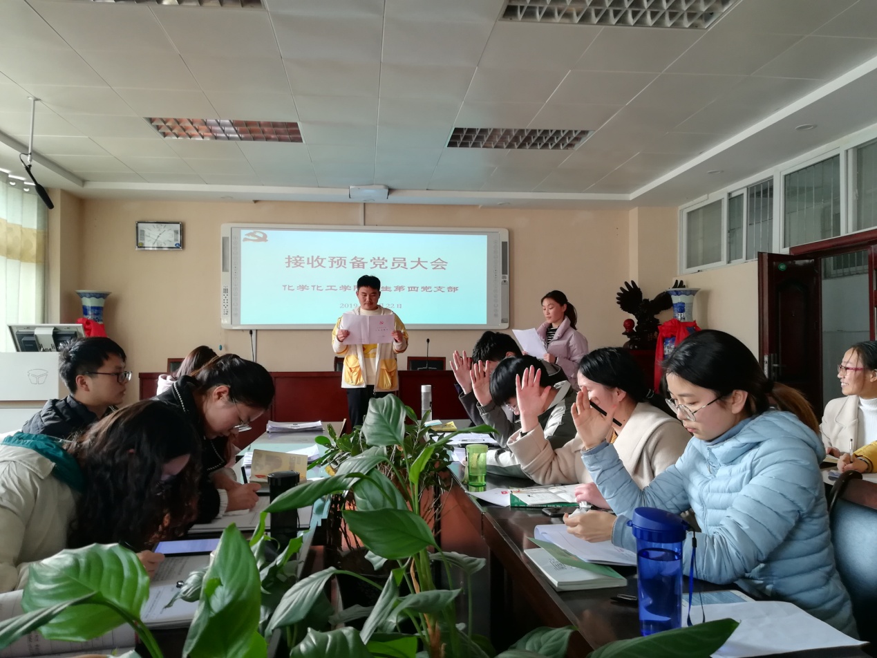 11月22日中午,PA视讯官方网站员工第四党支部在实验楼407会议室召开预备党员接收支部大会。第四党支部王露洁同志主持本次会议。