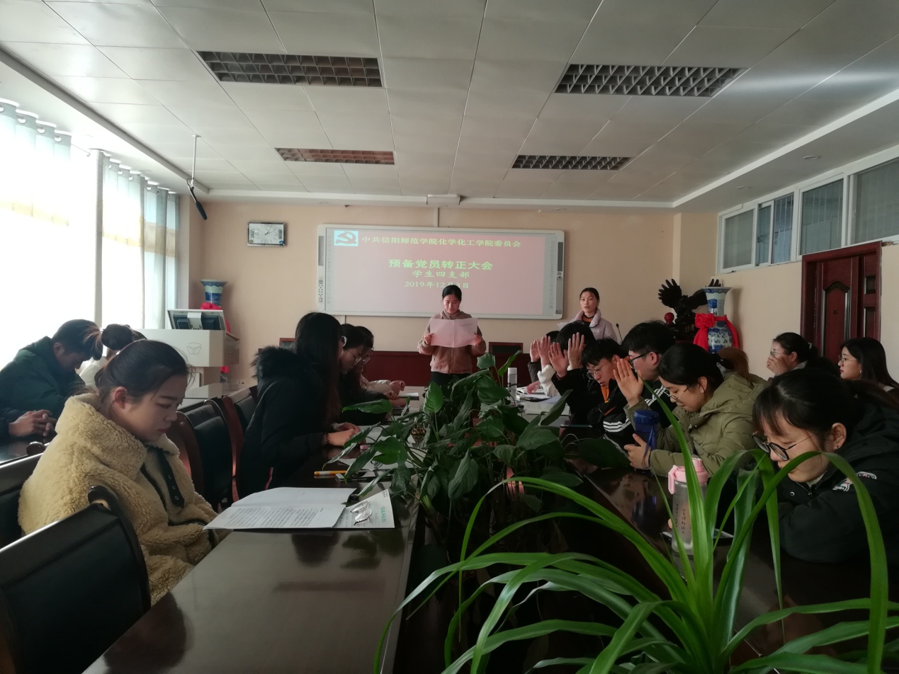 为进一步扩大党员队伍,严格履行党章规定的预备党员转正手续,2019年12月3日,PA视讯官方网站员工第四支部在实验楼407会议室召开预备党员转正大会,员工第四支部6名正式党员和25名预备党员参加本次大会,其中有6名预备党员转为正式党员。