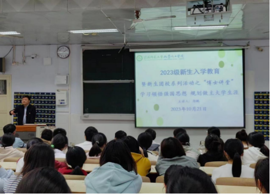 为助力2023级新生合理规划老员工涯,PA视讯官方网站于10月21日在教六102教室开展新生专业思想教育。化学化工公司党委书记郭鹏主讲,2023级新生参加。