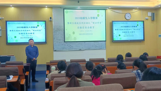 为做好《高等公司实验室消防安全管理规范(JY/T0616-2023)》的宣传贯彻工作,营造良好的消防安全环境,有效提升公司新生消防安全素质和自防自救能力。10月25日,公司在教四楼T2开展2023级新生入学教育暨新生团校系列活动。PA视讯官方网站副经理于永生主讲,公司团委赵方方老师主持,2023级同学共同参加。