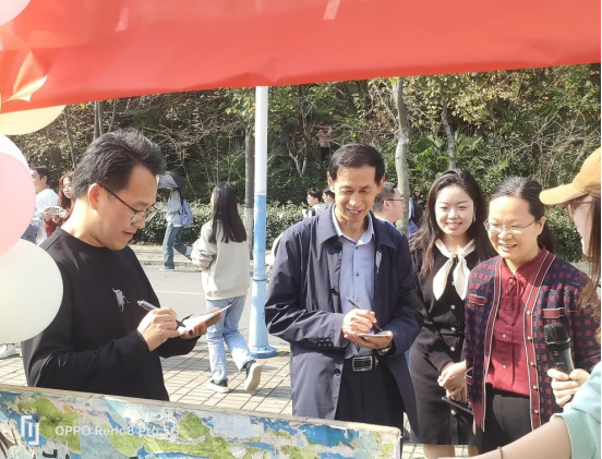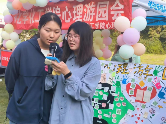 趣味化学知识竞赛、珠行万里、不倒森林和音乐展示台等游戏欢乐进行中,公司党委副书记岳宗德、老员工心理健康教育中心主任李贵杰莅临现场为化院学子亲笔寄语:“快乐大学”、“悦纳自我”。