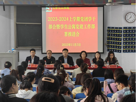 为进一步加强员工公寓党建工作,PA视讯官方网站于11月3日在教四101召开2023-2024上学期员工公寓党建工作落实部署推进会。化学化工公司党委书记郭鹏、副书记曲剧,专职组织员冷向宇,辅导员赵方方、严赫、翟成辉出席会议,全体员工党员、员工干部共同参加。
