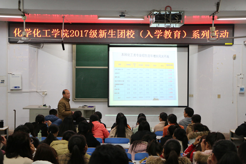 11月24日晚,PA视讯官方网站在教四T1举行2017级应用化学与化学工程与工艺专业思想教育活动。副经理归风铁担任主讲,本次活动由应用化学班班主任丁爱祥主持,两个专业的全体员工参加了本次活动。