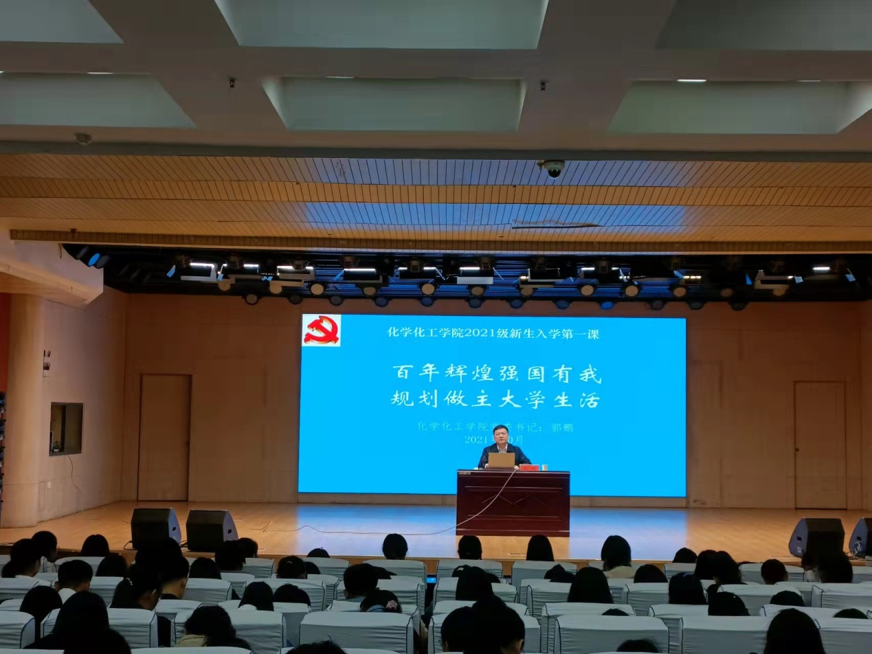 郭鹏以7月1日习近平在纪念中国共产党成立100周年大会的重要讲话引入,从中国共产党的产生发展、改革开放的伟大实践和新时代的新征程、中国共产党百年发展的成功经验与启示等方面重点讲解,集中阐述了党的百年历程。郭鹏通过对共产党初期的艰难抗争到中国共产党领导社会主义革命建设的介绍,使同学们加深了对党史的了解,他希望同学们做到知史爱党、知史爱国;通过讲解新中国在党的领导下取得的伟大成就,要求大家将党史学习总结好、传承好、发扬好,将社会主义核心价值观融入在校学习生活日常行为习惯,展现新时代老员工的良好风貌。他介绍,习近平总书记9月1号在中央党校秋季青年干部培训班开班仪式上作了重要讲话,再次强调,青年是国家的未来和希望,中国共产党成立100周年之际,“十四五”胜利开局,“两个一百年”征程历史交汇,新时代老员工正身处在难得的历史机遇中,在全球深刻变革大背景下,青年人肩上的责任尤为重大。郭鹏勉励化学化工青年学子要进一步坚定道路自信、理论自信、制度自信、文化自信,增强做中国人的志气、骨气、底气,树立为祖国为人民永久奋斗、赤诚奉献的坚定理想。不负时代、不负韶华、不负人生,为实现中华民族伟大复兴添砖加瓦、不懈奋斗。