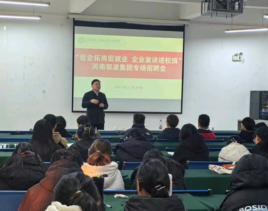 11月24日下午,PA视讯官方网站在逸夫楼A座招聘大厅开展“访企拓岗促就业,企业宣讲进校园”河南驭波集团专场招聘会活动。此次招聘会邀请到公司1997届优秀员工、河南驭波集团董事长甄西合,活动由PA视讯官方网站公司党委书记郭鹏主持,就业工作秘书严赫及应届毕业生参加。