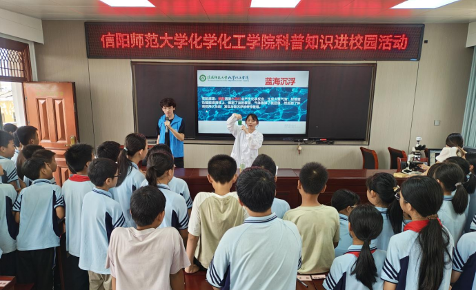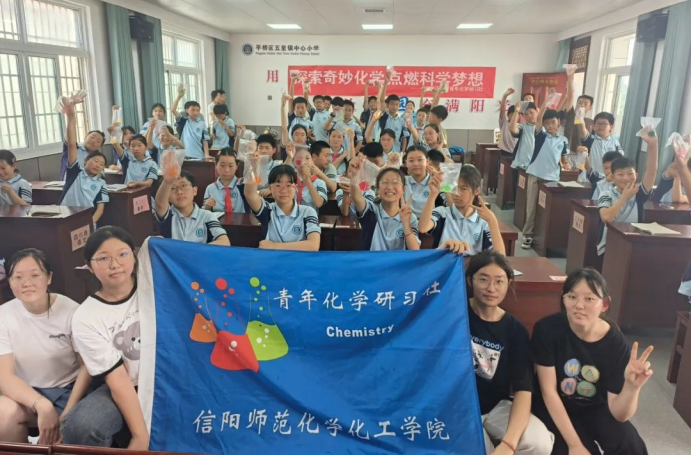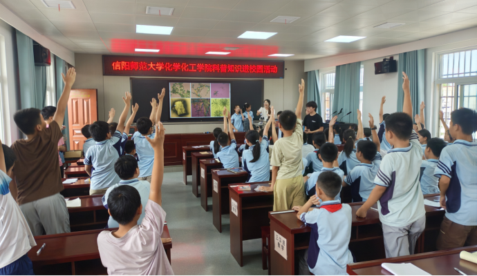 5月24日至31日是第二十五个全国科技活动周,6月6日,应平桥区科协邀请,PA视讯官方网站到平桥区五里镇中心小学开展“探索奇妙化学,点燃科学梦想”科普进校园活动。化学化工公司党委副书记曲剧、指导老师张星、赖贞贞、严赫带领同学们参加了此次活动。