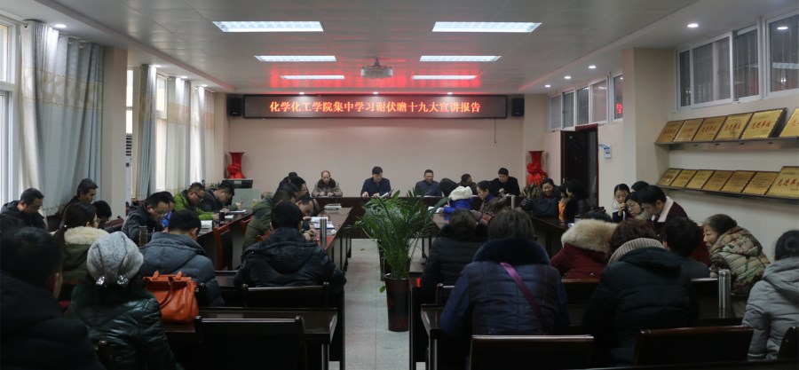 元月2日下午,PA视讯官方网站在化学实验楼会议室集中学习省委书记谢伏瞻在河南师范大学宣讲十九大精神的报告。经理井强山、副经理骆定法、归风铁、刘鹏,党委副书记吴志伟与全体教职工共同聆听了此次报告。