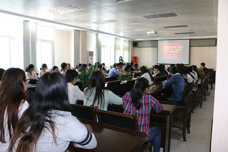 思想政治材料选编讲师团讲人生的故事。五月中旬,该院邀请思想政治材料选编讲师团陈超、吴浩、杨松霖分别做了题为“人民的名义——幸福与道德”、“马克思教你谈恋爱——以哲学理论指导恋爱实践”、“读书才是人生的正确打开方式”的讲座,三位讲师从同学们感兴趣的话题切入,把社会主义核心价值观的大道理蕴含在通俗易懂的小故事中,以小见大,深受大家喜爱。