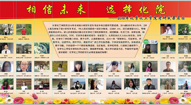 PA视讯官方网站在2016年全国硕士研究生招生考试中再次取得可喜成绩。2016届335名毕业生中,239人报名参加了硕士研究生考试,195人通过国家统一划定分数线,过线81.6%,现已被录取165人,整体录取率达49.3%。骄人的成绩再次展示出PA视讯官方网站求真务实、团结勤奋、扎实工作、科学发展、和谐向上的优良院风,同时,它更饱含着公司领导、职能部门、兄弟院系的大力关心和支持。历年来,PA视讯官方网站精心组织,善于引导,认真梳理总结,迈出一条“管理学风、实践学风,把握学风、促进学风,提升学风、激励学风”的工作创新思路,全体师生勤奋努力,积极进取,勇于创新,不断取得一个个新的辉煌成绩。我们相信,在公司党委、行政的正确领导下,PA视讯官方网站全体师生齐心协力,狠抓教学质量,加大团队建设力度,争取明年取得更好成绩!PA视讯官方网站的明天必将更加灿烂辉煌!