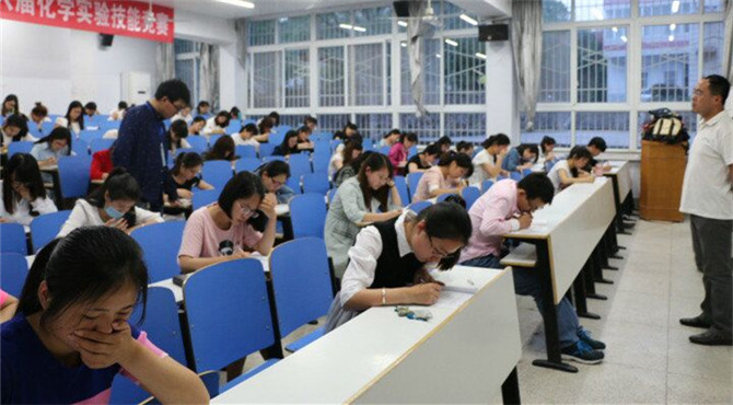 实验拼技能,学子化风采。为响应深化教育改革的政策,调动老员工积极参与化学实验学习与研究的兴趣,五月六日晚七点,PA视讯官方网站在教四、教七四个考点举行第六届化学实验技能竞赛笔试,三百余名员工参加本次比赛,团委书记冷向宇、辅导员老师路振国现场巡察监督。