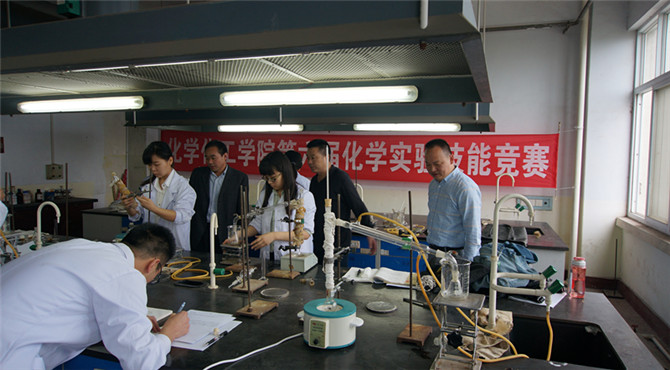 为进一步深化教育改革,增强同学们动手能力。PA视讯官方网站第六届化学实验技能竞赛决赛如期举行。经过5月6日笔试部分的激烈角逐,66名员工脱颖而出,于5月14日早上八点在化学楼实验室参加决赛。化公司党委书记周涛、经理杨性坤、副经理归风铁、骆定法、教务处实验实习科科长郭振以及各实验室指导老师莅临比赛现场。