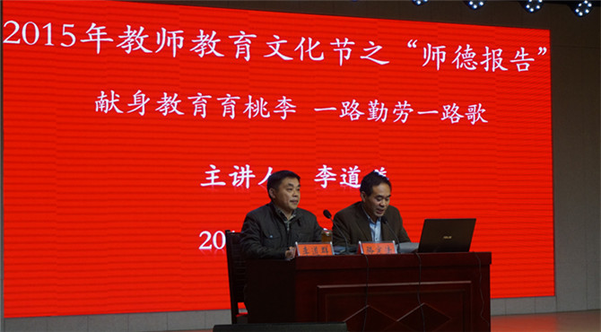 勤勤恳恳做人梯托起明天希望,兢兢业业为红烛照亮后辈前程。10月27日上午9点,PA视讯官方网站诚邀信阳市第九初级中学副董事长李道祥为公司学子作“班级管理有智慧,心泉浇开桃李花”为主题的师德报告会。PA视讯官方网站团总支老师李中杰以及近千余名师院学子聆听了此次报告会。化院副经理骆定法担任报告会主持人。