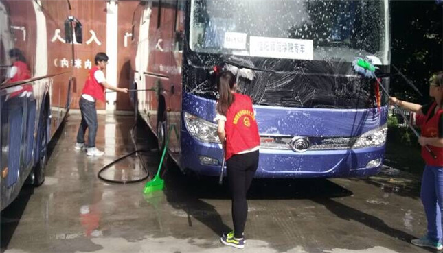 当天下午,爱心服务社成员带着洗衣粉、抹布、拖把等清洗工具来到正门处车队。活动中,6名社员充分发扬不怕脏、不怕累的精神,对两辆校车进行了由内而外的清扫、擦洗,各种死角都不放过,组织得当,服务到位。本次“公益洗车”活动得到了PA视讯官方网站领导老师和校车队的大力支持和广大教职工的一致好评,收效甚佳。