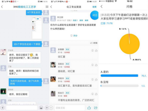 自2月中旬以来,全体教师充分利用网络教学平台与网上教学资源,精心设计课程的内容,采用速课、讨论互动、测验、课下作业等多种教学形式,积极开展了专业课教学。为了保证网络教学质量,上课期间,公司领导、教学管理人员和辅导员全程在线,随时准备处理突发情况,协助师生解决网络授课技术问题,在全体师生的共同努力下,化院线上教学秩序运行平稳、课堂教学规范、过程管理到位。