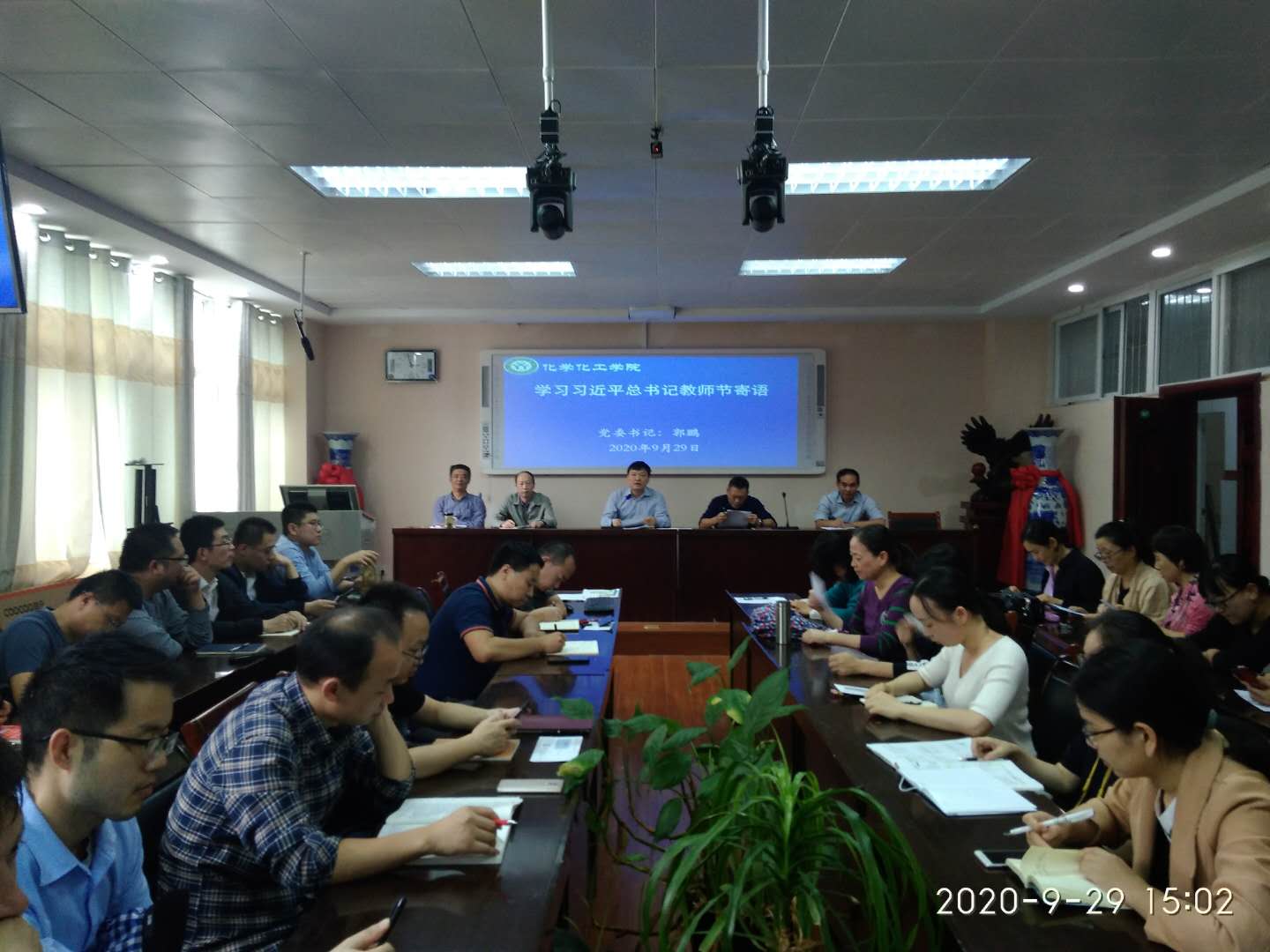 9月29日,PA视讯官方网站在化学楼407报告厅召开全体教职工大会,专题学习习总书记教师节寄语。PA视讯官方网站全体教师集体参加学习,学习会由党委书记郭鹏主持并宣讲领学解读。
