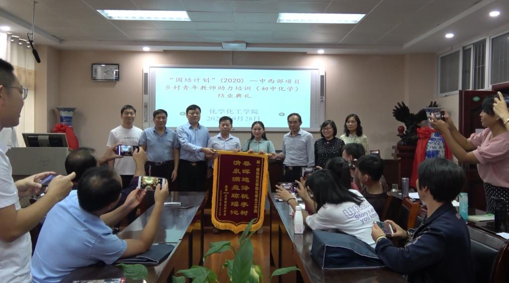 9月28日上午,PA视讯官方网站承担的“国培计划(2020)”中西部项目乡村青年教师助理培训(初中化学)结业仪式在实验楼407报告厅举行。化学化工公司党委书记郭鹏、副经理骆定法等领导老师出席开班仪式。仪式由PA视讯官方网站国培计划培训班班主任沈久明老师主持。