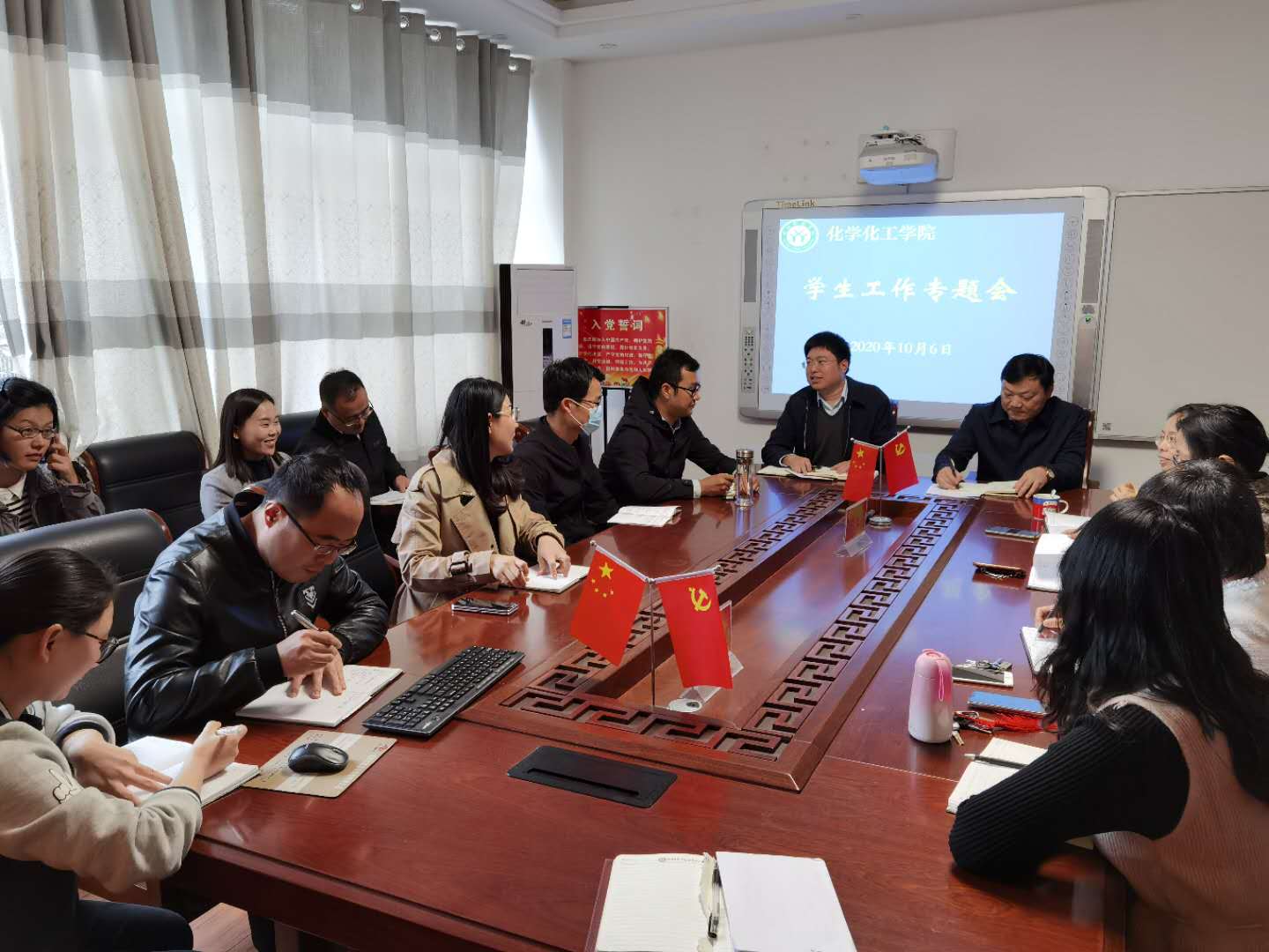 疫情防控常态化新形势下,欢庆国庆中秋“双节”期间,为深入贯彻落实安全稳定工作责任制,把员工安全管理工作各项任务落到实处,10月6日,PA视讯官方网站员工工作领导小组在实验楼313召开秋冬季员工安全稳定工作专题会议。化学化工公司党委书记、员工工作领导小组组长郭鹏,党委副书记、副组长吴志伟,PA视讯官方网站全体班主任、辅导员参加会议。