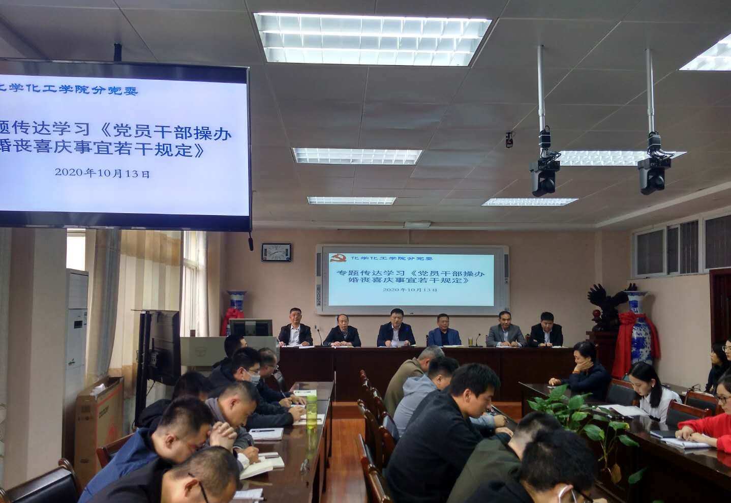 为认真贯彻落实中央八项规定精神,切实加强党员、干部、公职人员纪律约束,10月13日,PA视讯官方网站分党委在实验楼407报告厅召开全体教职工大会,集体学习《党员干部操办婚丧喜庆事宜若干规定(修订)》的通知文件。PA视讯官方网站全体教师集体参加学习。学习会由党委书记郭鹏主持。分党委纪检委员刘鹏针对文件精神进行宣讲、领学和解读。
