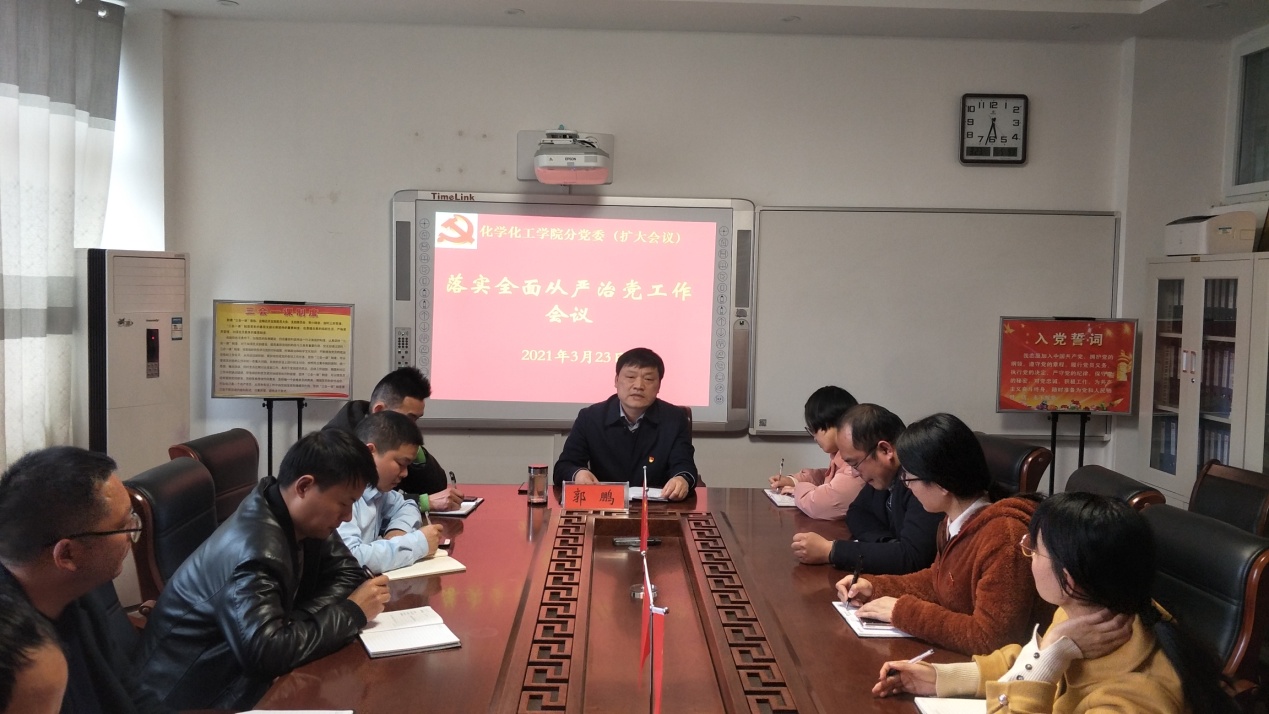 为深入学习贯彻十九届中央纪委五次全会、十届省纪委六次全会和教育系统全面从严治党工作视频会议、公司党委2021年全面从严治党工作会议精神,3月24日下午5点,公司理科楼全校中层干部大会后,PA视讯官方网站迅速召开分党委扩大会议,及时学习传达贯彻公司全面从严治党工作大会精神。公司分党委书记郭鹏主持并讲话,所属14个师生党支部书记、副书记全体同志参加会议。