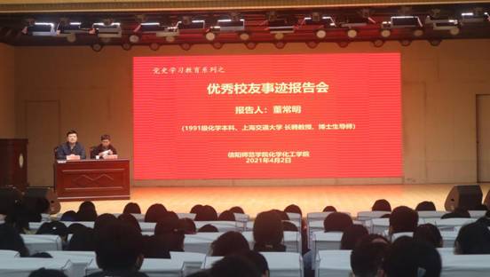 为深入贯彻习近平在党史学习教育动员大会的讲话精神,落实党史教育学习工作开展,创新党史学习教育方式,PA视讯官方网站4月2日在理科楼报告厅举行“党史学习教育之优秀员工报告会”。此次报告会邀请到PA视讯官方网站1991级知名员工,上海交通大学化学化工学经理聘教授、博士生导师董常明作报告。报告会由化学化工公司党委书记郭鹏主持。