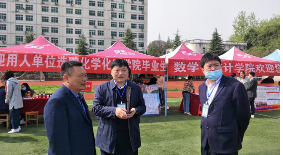 党史学习教育活动中,围绕“学党史、悟思想、办实事、开新局”,针对为师生办实事、办好事、解难事这一关键,积极服务毕业生就业创业,4月10日,由河南省教育厅主办、信阳师范公司承办的“河南毕业生就业市场豫南分市场暨信阳师范公司2021届毕业生线下春季双选会”在公司西操场举行。PA视讯官方网站组织毕业生积极参加招聘会,公司党委书记郭鹏、经理井强山、党委副书记吴志伟、毕业班辅导员冷向宇、就业办秘书严赫等就业创业工作领导小组成员莅临招聘会现场,一线开展毕业生就业招聘指导、咨询、服务,并与用人单位以及参与招聘的员工代表进行沟通交流,切实为毕业生办好实事。