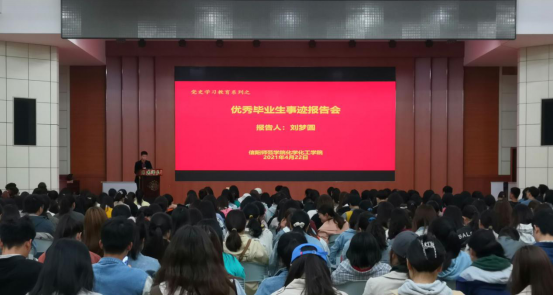 为深入贯彻习近平在党史学习教育动员大会的讲话精神,落实党史教育学习工作开展,创新党史学习教育方式,PA视讯官方网站4月22日晚在逸夫楼报告厅举行“党史学习教育之优秀毕业生报告会”。此次报告会邀请到PA视讯官方网站2016级毕业生刘梦圆作报告,由PA视讯官方网站辅导员严赫主持,PA视讯官方网站2019级全体员工参加。