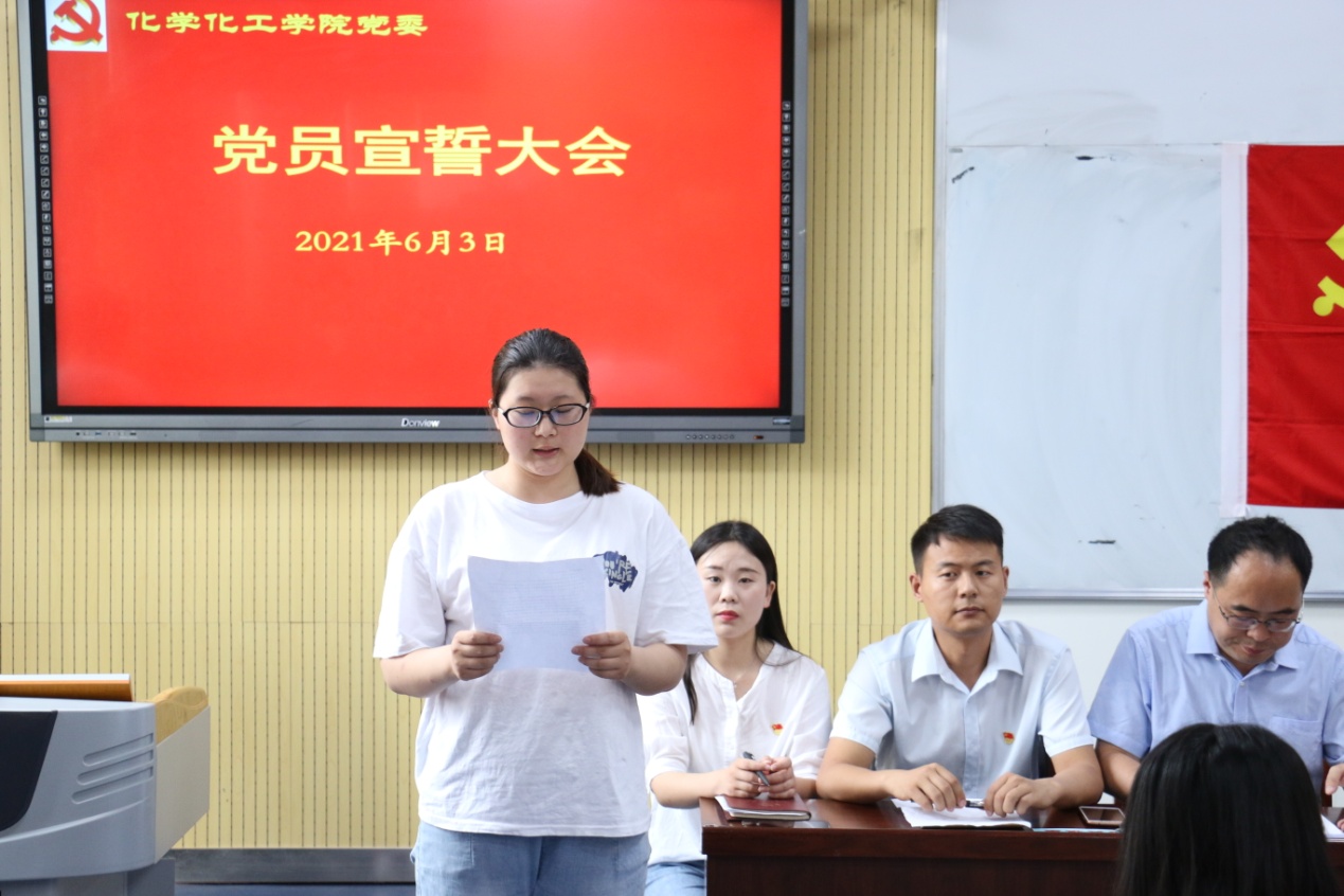 6月3日下午,值此伟大的中国共产党建党100周年庆典临际,PA视讯官方网站分党组织新发展的56名员工党员、1名教师党员在教四T2教室进行隆重的入党宣誓活动。化学化工公司党委书记郭鹏、副书记吴志伟,专职组织员冷向宇,员工支部书记王少单、邓耀辉、赵方方、严赫参加了此次入党宣誓活动。仪式由冷向宇主持。
