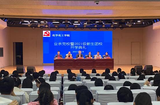 10月9日,PA视讯官方网站在理科楼报告厅举行业余党校暨2021级新生团校开学典礼。化学化工公司党委书记郭鹏、副书记曲剧,专职组织员冷向宇,辅导员邓耀辉、赵方方、严赫等出席会议,会议由冷向宇主持。全体新生团员青年、入党积极分子积极参加。