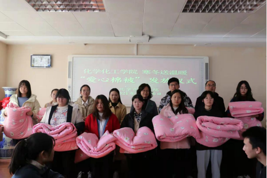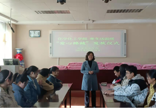 “一床被子,一份温暖,一颗爱心,一份感动”。11月26日,PA视讯官方网站爱心棉被发放仪式在化学楼407会议室举行。公司党委副书记曲剧,辅导员冷向宇、赵方方、严赫老师出席本次发放仪式。