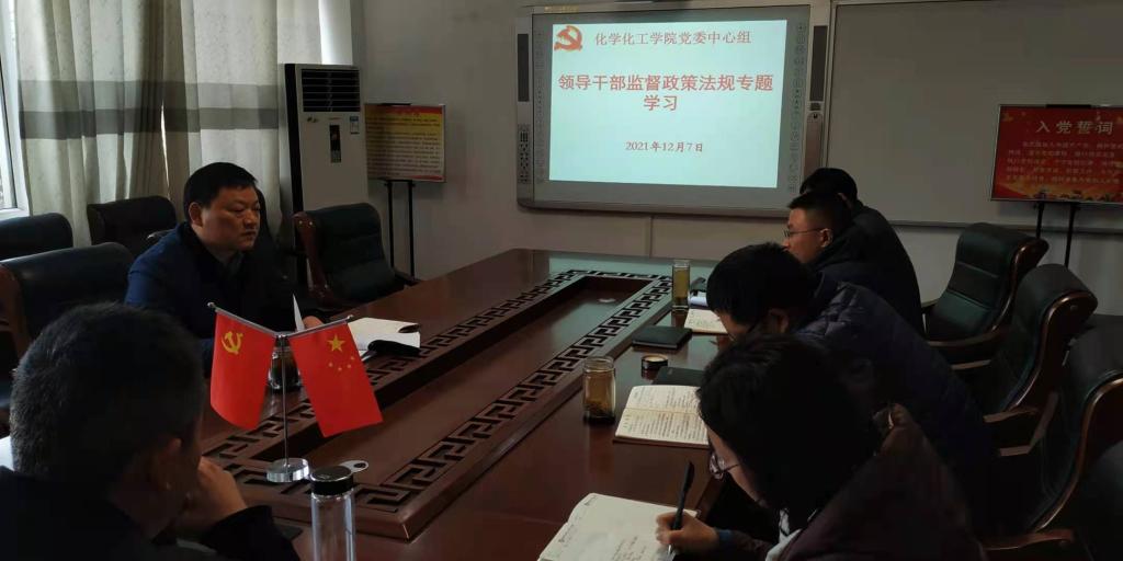 12月7日,化学化工公司党委召开中心组专题学习会,集体学习《关于领导干部及时报告个人有关事项的通知》等有关制度文件。公司党委中心组全体成员参加会议,会议由党委书记郭鹏主持。