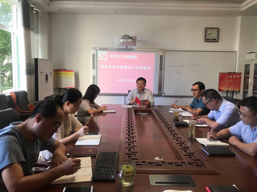 8月30日,PA视讯官方网站在实验楼“党员之家”会议室召开落实省委巡视反馈整改工作会议,集中学习研讨《关于新形势下党内政治生活的若干准则》。化学化工公司党委成员参加会议。会议由公司党委书记郭鹏主持。