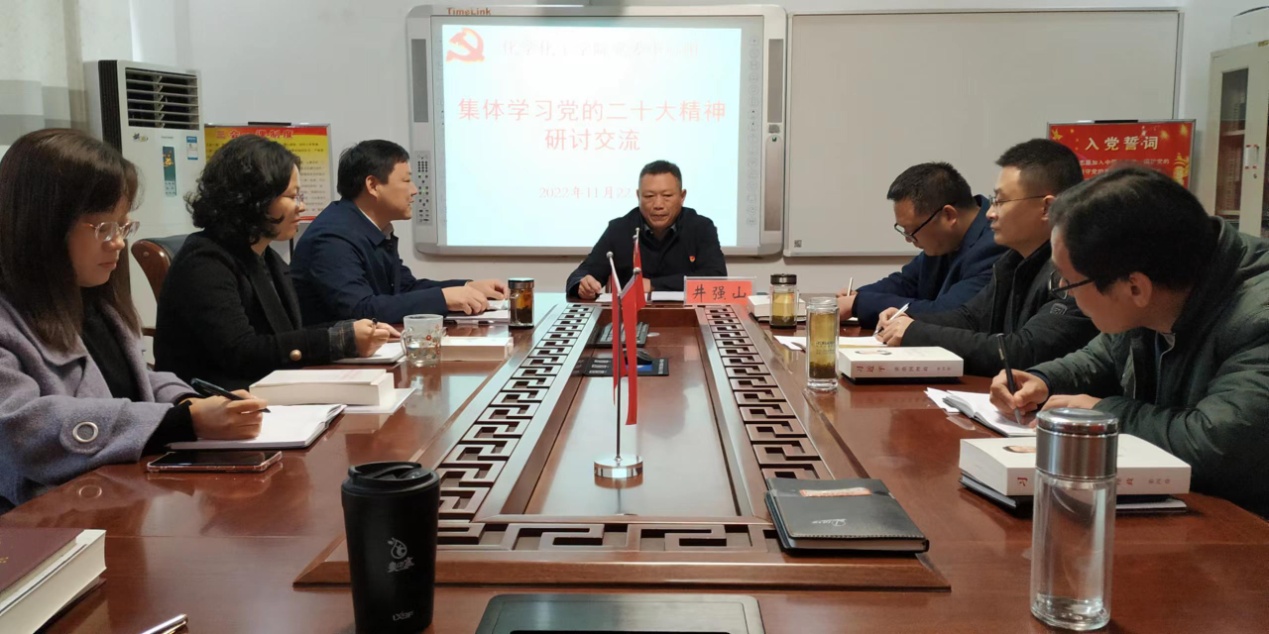 11月22日上午,化学化工公司党委理论学习中心组于化学实验楼313会议室集中学习研讨党的二十大精神,副董事长井强山到会指导。化学化工公司党委理论学习中心组成员参会,会议由化学化工公司党委书记郭鹏主持。